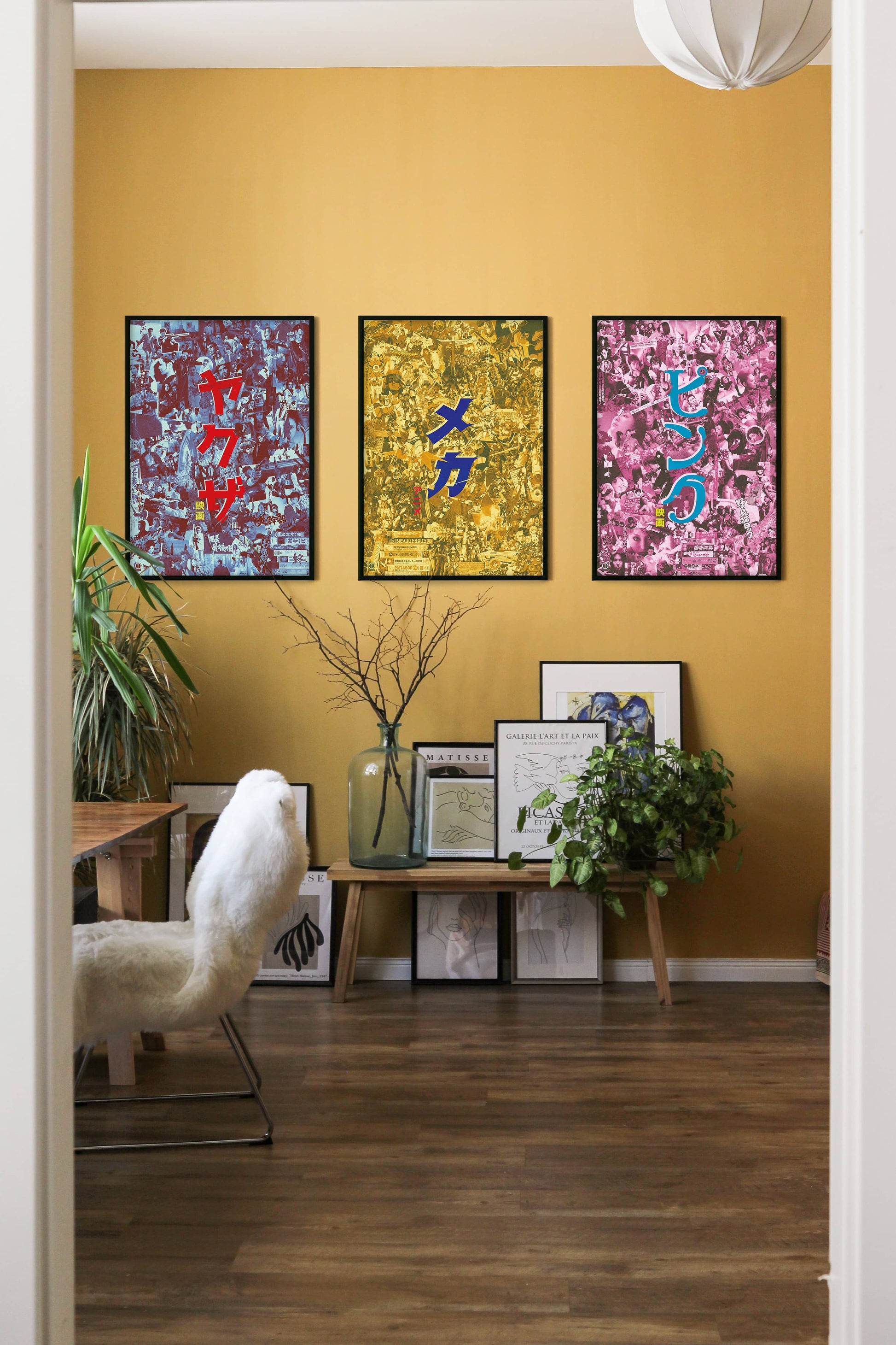 The first series mixes a classic and well known genre with the Yakuza Eiga, to a more modern genre with Mecha Anime to end with Pink Eiga, the erotica genre. We have each time creating a collage of iconic moments from the movies and gave them a specific color vibe.