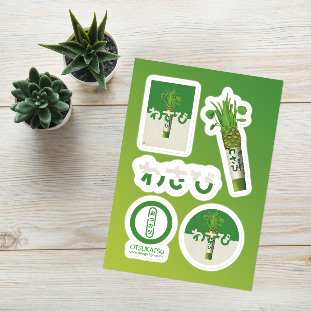These glossy wasabi stickers are made to go everywhere with you, on your notepad, your laptop, your luggage...