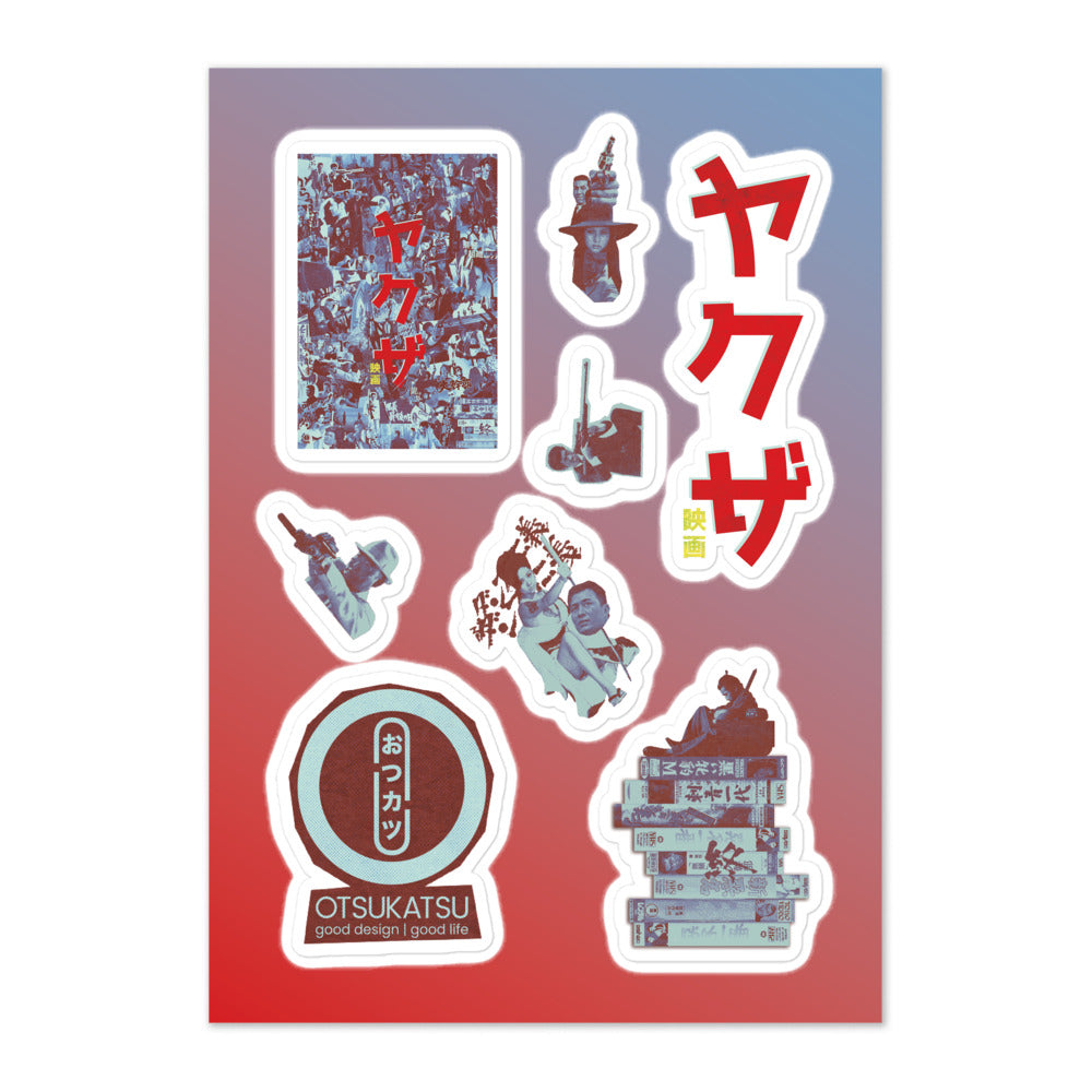 These 8 glossy Yakuza Eiga stickers are made to go everywhere you need, on your briefcase full of cash, on your katana sheath, on your pachinko machine, your sake bottle, to mark your territory or on your black sedan dashboard